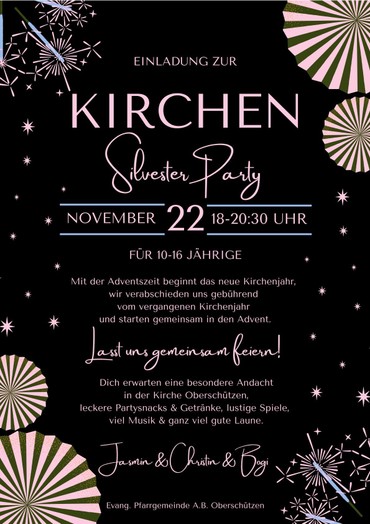 Einladung zur KirchenSilvesterParty für 10-16 Jährige, Samstag, 22. November 2025, 18:00 bis 20:30, Evang. Kirche Oberschützen