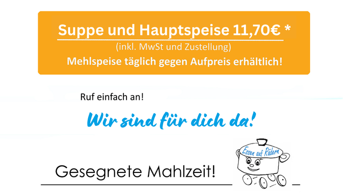 Essen auf Rädern - Täglich frisch gekochtes und schmackhaftes Essen nach Hause!