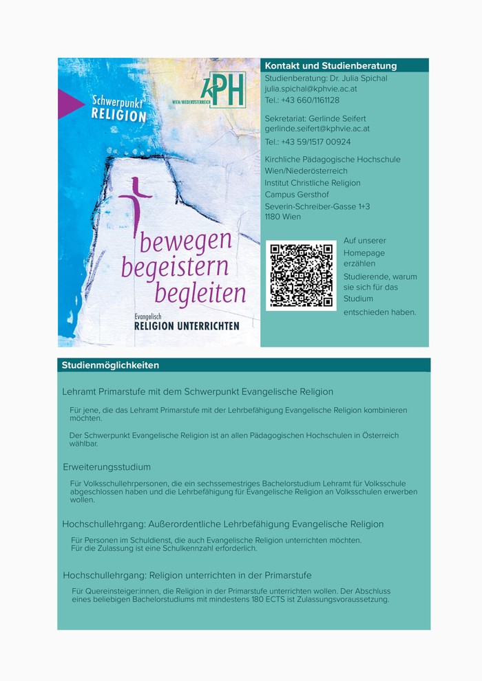 Evangelisch RELIGION unterrichten | Studienmöglichkeiten | KPH Wien/Niederösterreich