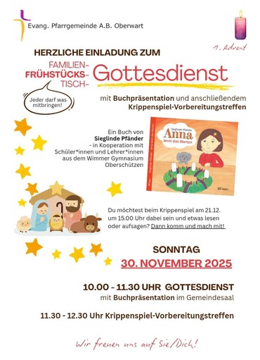 Familiengottesdienst mit Buchpräsentation am 1. Adventsonntag, 30.11.2025 um 10:00, im Evang. Gemeindesaal in Oberwart