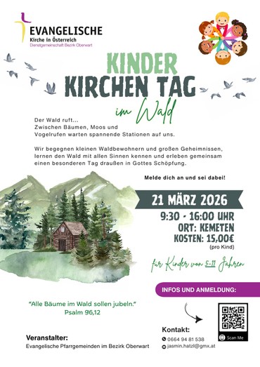 Kinder-Kirchen-Tag im Wald am Samstag, 21. März 2026, von 9:30 bis 16:00, in Kemeten