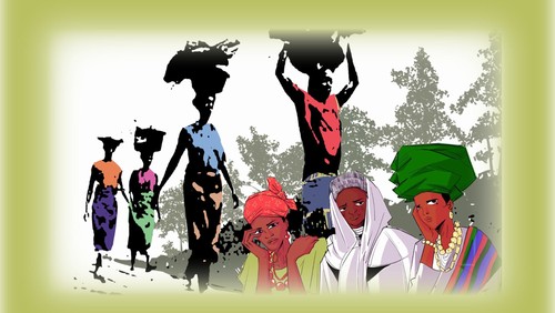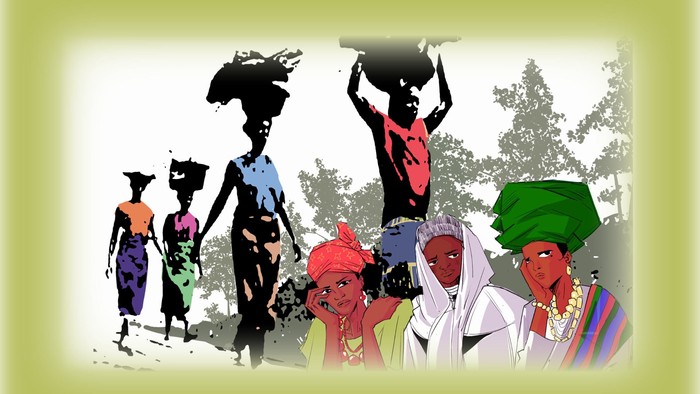 Die nigerianische Künstlerin Gift Amarachi Ottah zeigt uns in einer graphisch und farblich prägnanten Darstellung die Gesamtproblematik des größten westafrikanischen Staates. Zu viele Probleme aller Art belasten die Gesellschaft, die unterschiedlicher nicht sein kann. Verschiedene Völkergruppen, dargestellt von drei Frauen in ihrer traditionellen Kleidung, werden durch die katastrophale politische und soziale Struktur des Landes und der daraus resultierenden Armut schwer belastet. Mit dem eigens für den WGT 2026 geschaffene Bild mit dem Titel «Ruhe für die Erschöpften» möchte die Künstlerin vor allem auf die tägliche Realität nigerianischer Frauen auf dem Land hinweisen. Ihr Leben ist von Sonnenaufgang bis Sonnenuntergang von endloser Arbeit geprägt.